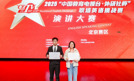 近日,2025“中国教育电视台·外研社杯”职场英语挑战赛演讲与写作大赛(北京赛区)圆满落幕。bwin必赢职业学院首次选派4名学生参赛,在演讲与写作两个赛项中均表现优异,共摘得二等奖2项、三等奖2项,充分展现了学院学子良好的英语语言应用能力、出色的职业素养与昂扬的精神风貌。